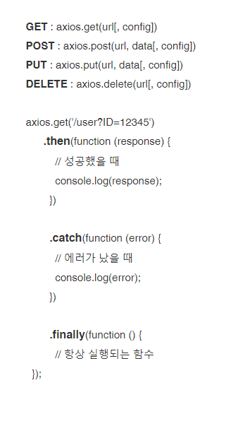 axios는 별도 설치가 필요로한 단점이 있으나 fetch보다 많은 기능지원과 문법이 조금이나마 간소화된다는 장점이 있다! 따라서 간단히 사용할때는 fetch를 쓰고 확장성을 염두해볼때 axios를 쓰면 좋다.