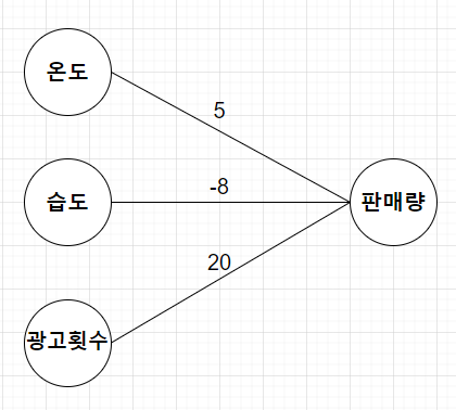 판매량 = 5*온도 - 8*습도 + 20*광고횟수 + 4