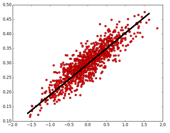 y1= x1 * 0.1 + 0.3 + np.random.normal(0.0, 0.03)
