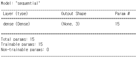 위 모델의 parameter 개수를 본다면 15개임을 확인할 수 있습니다.