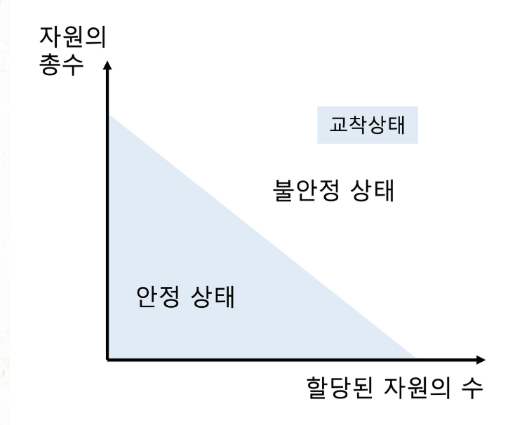 - 불안정 상태라고 해서 반드시 교착 상태가 발생하는 것은 아니지만, 교착 상태 발생 가능성이 높아진다.