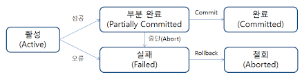 실패 (Failed) | 트랜잭션 처리 도중 오류(예: 제약조건 위반, 시스템 오류)가 발생하여 더 이상 진행이 불가능해진 상태. |