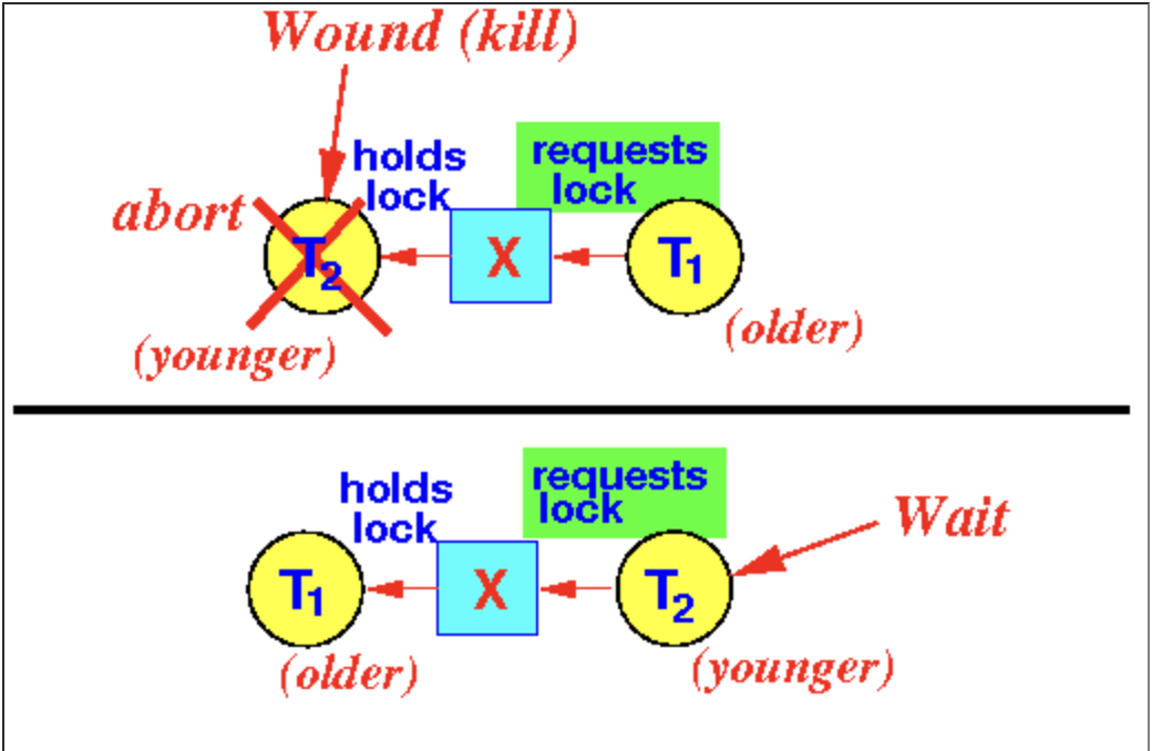 둘 중 한 쪽 트랜잭션을 강제로 롤백하여 교착상태를 해소함