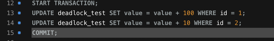 SELECT * FROM accounts WHERE id IN (1, 2) ORDER BY id FOR UPDATE```