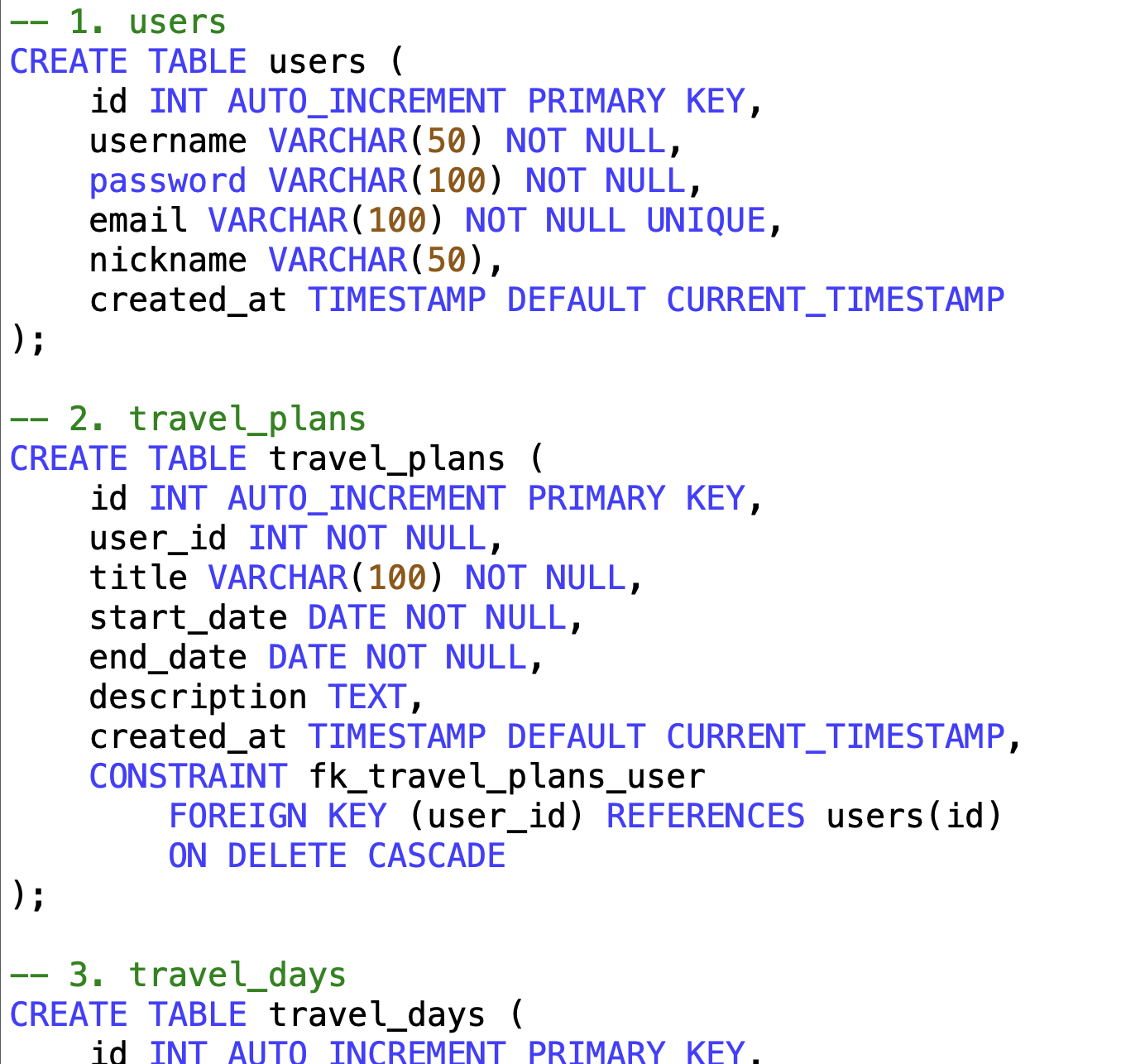 ERD를 실제 테이블로 생성하는 쿼리문 예시