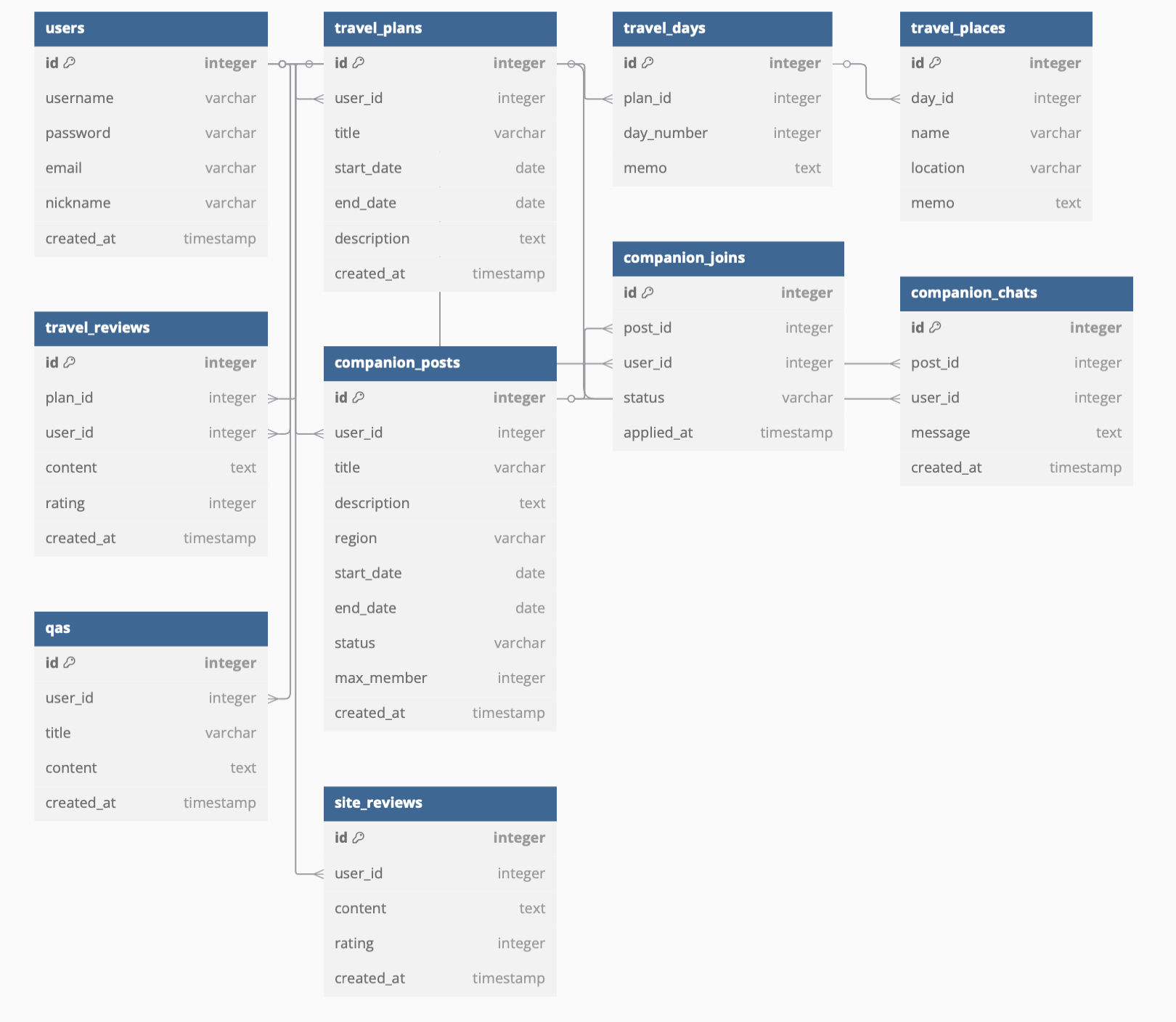 개인 프로젝트에서 쓰일 임시로 만든 ERD
