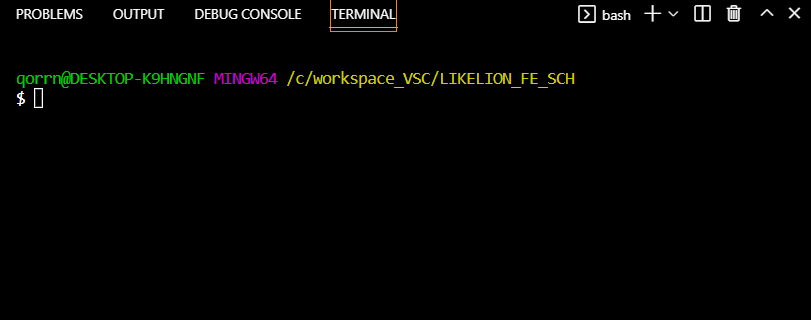 비주얼 스튜디오 코드를 실행하고 ctrl + shift + ` 로 새 터미널을 연다.