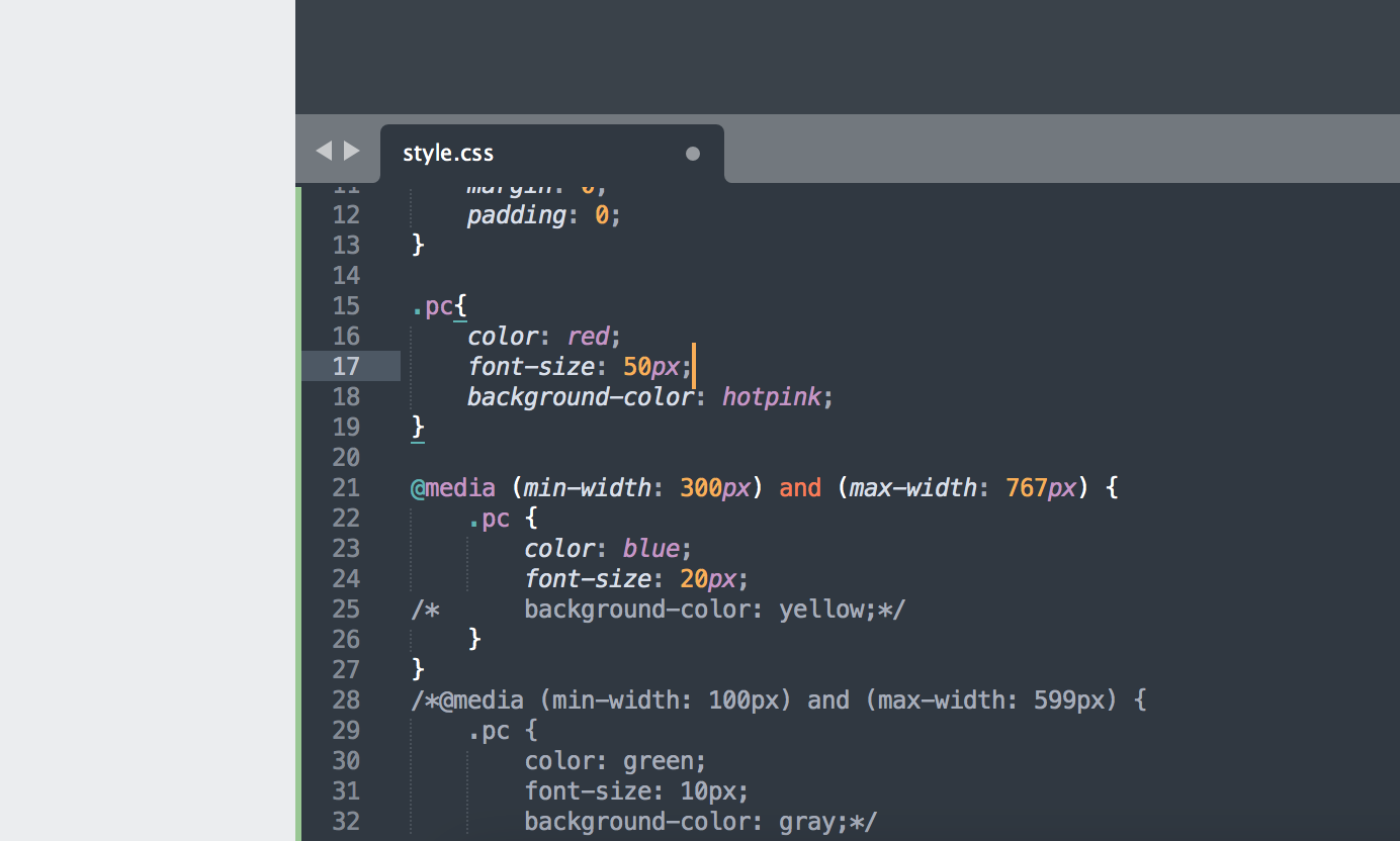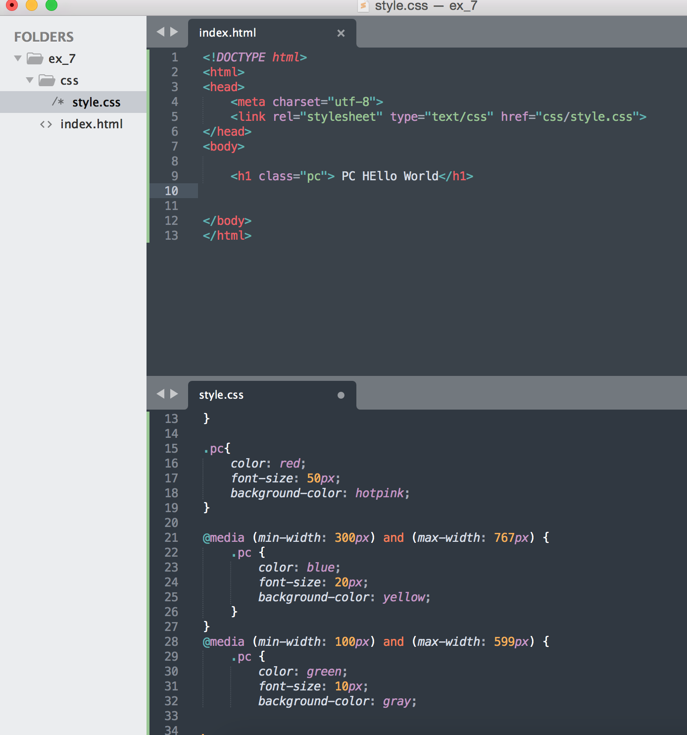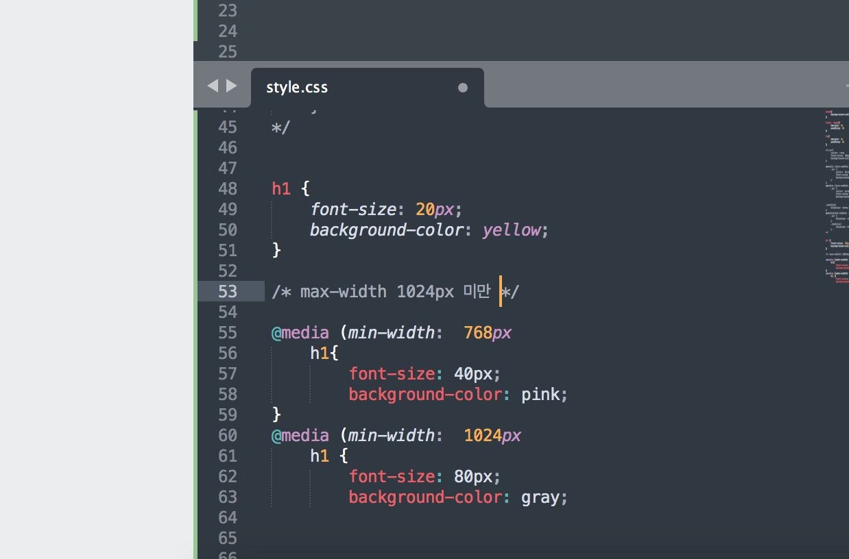 미디어쿼리의 핵심!지정값에 따라 화면을 변하게 할 수 있다.
