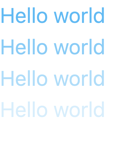 으로 설정한 제일 마지막 텍스트는 보이지 않게 되었고 위의 각 텍스트도 투명도가 잘 적용된 것을 볼 수 있다 :)