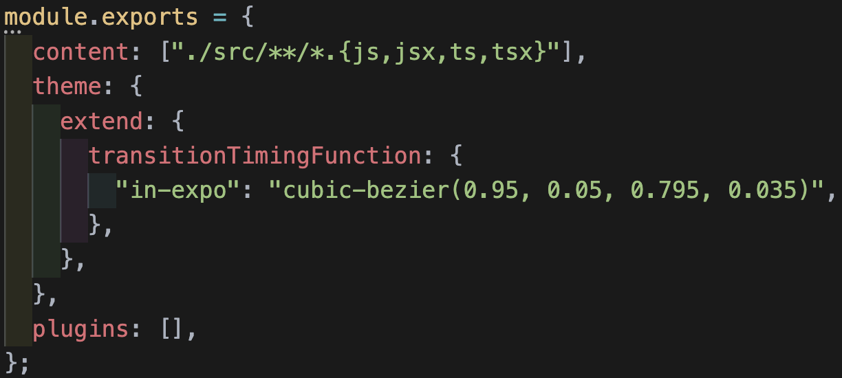ease-out | • transition-timing-function: cubic-bezier(0, 0, 0.2, 1) : 처음에는 속도가 빠르지만 끝으로 갈수록 속도가 느려짐 (보통 -> 느림) |