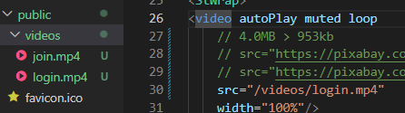 그래서인지 몰라도 src 폴더에 있는 mp4 같은 경우 불러 올 수 가 없었다.