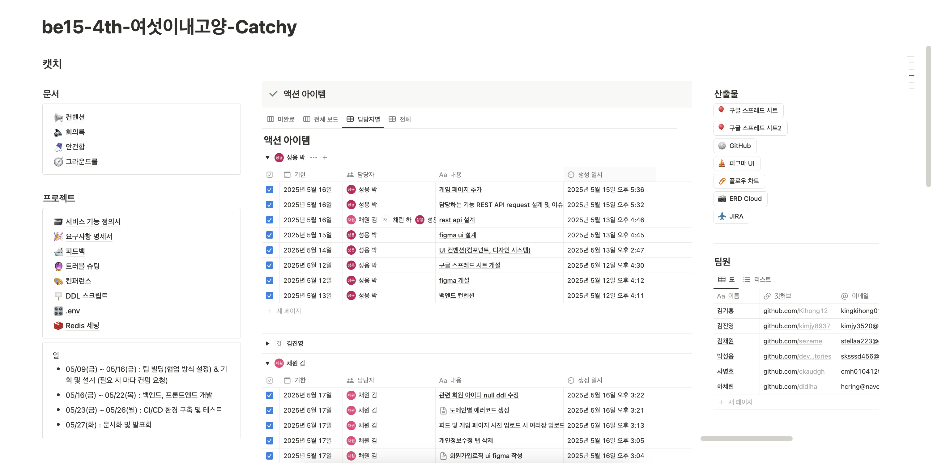이번 프로젝트 기획 단계에서 저는 노션 페이지 설계를 맡았습니다. 이전 백엔드 프로젝트에서 설계했던 템플릿이 충분히 효율적이고 효과적이라고 판단하여 기존 템플릿을 유지하되 몇 가지를 추가했습니다.