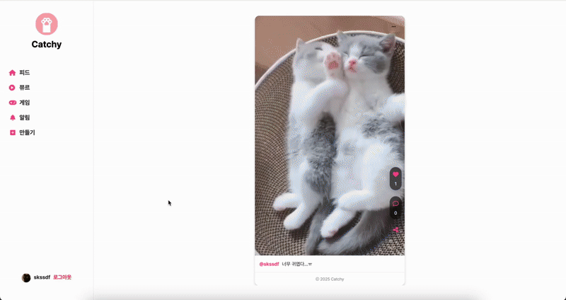 해당 게임은 우리 팀이 시연 1등으로 만들어주는데 일등공신을 해주는 기능이라고 개인적으로 생각하는 아주 귀여운 기능입니다. 사용자가 직접 자기 고양이 이미지를 선택하여 카드 맞추게 게임을 할 수 있는데요. 백엔드는 어려울 것이 없었지만 프론트 구현에서 다소 어려움이 있었고 시간에 따라 타이머바가 자연스럽게 채워지는 애니메이션을 적용하기 위해 requestAnimationFrame을 적용했습니다.