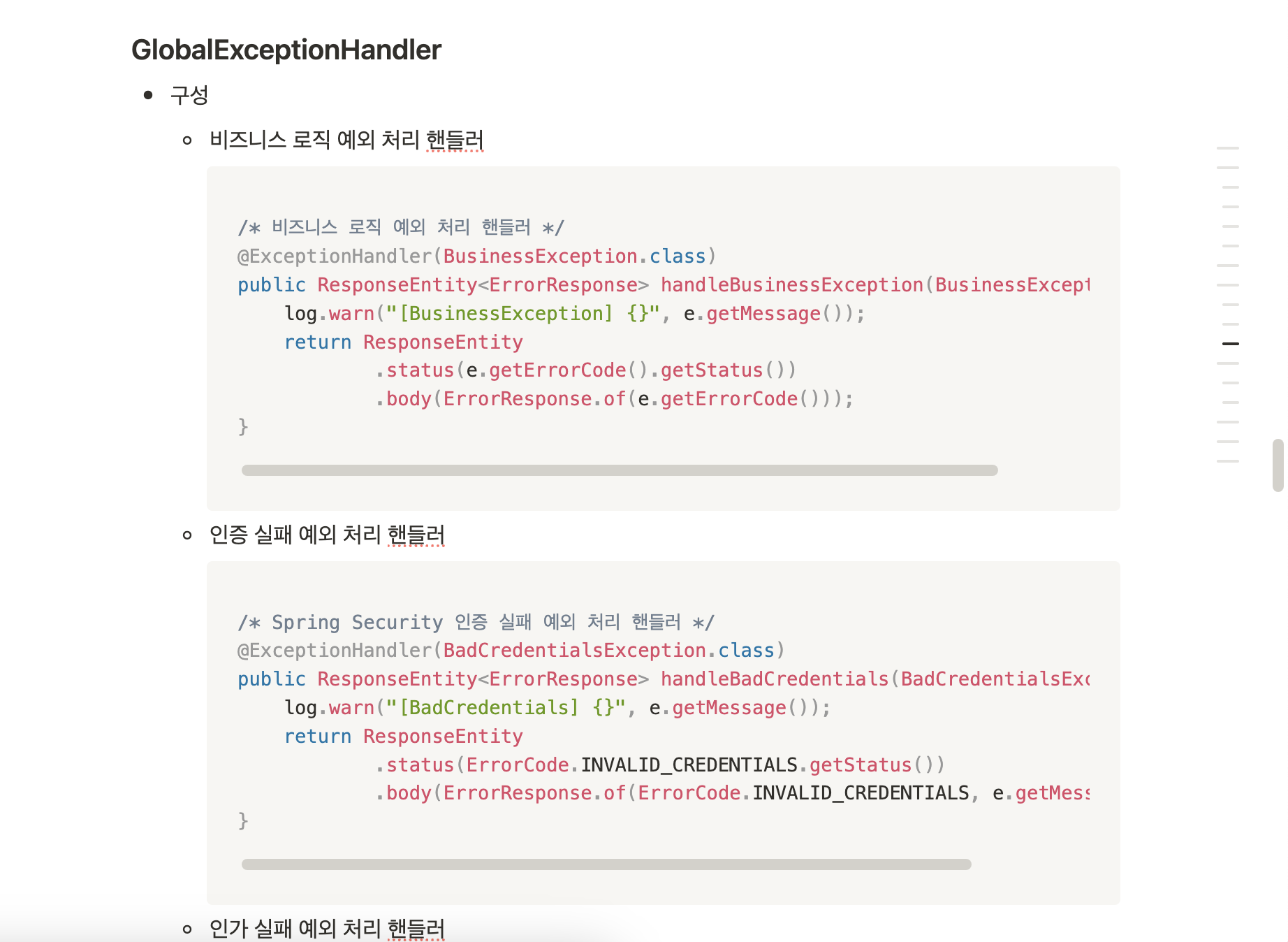 GlobalExceptionHandler에 대한 컨벤션도 미리 정리하고 함께 공유하다보니 이번 프로젝트에선 모두 예외 처리를 동일하게 한 것이 매우 의미가 있었던 것 같습니다.