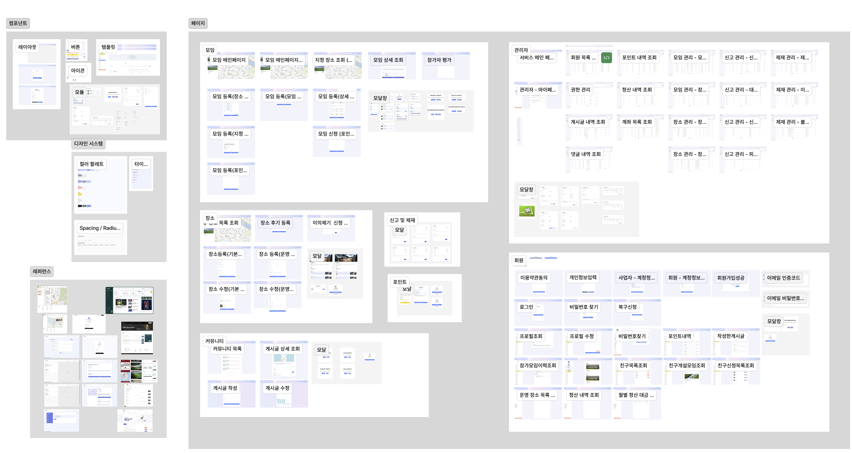 화면 설계 기간을 1주 정도로 잡았는데 저희가 디자인해야 하는 페이지는 70 페이지가 넘었습니다. 그래서 저희는 백엔드 프로젝트에서 담당한 도메인별 페이지를 제작하게 되었고 최대한 효율적이고 유지보수성이 높으면서 디자인 통일성을 줄 수 있는 컴포넌트를 설계했습니다.