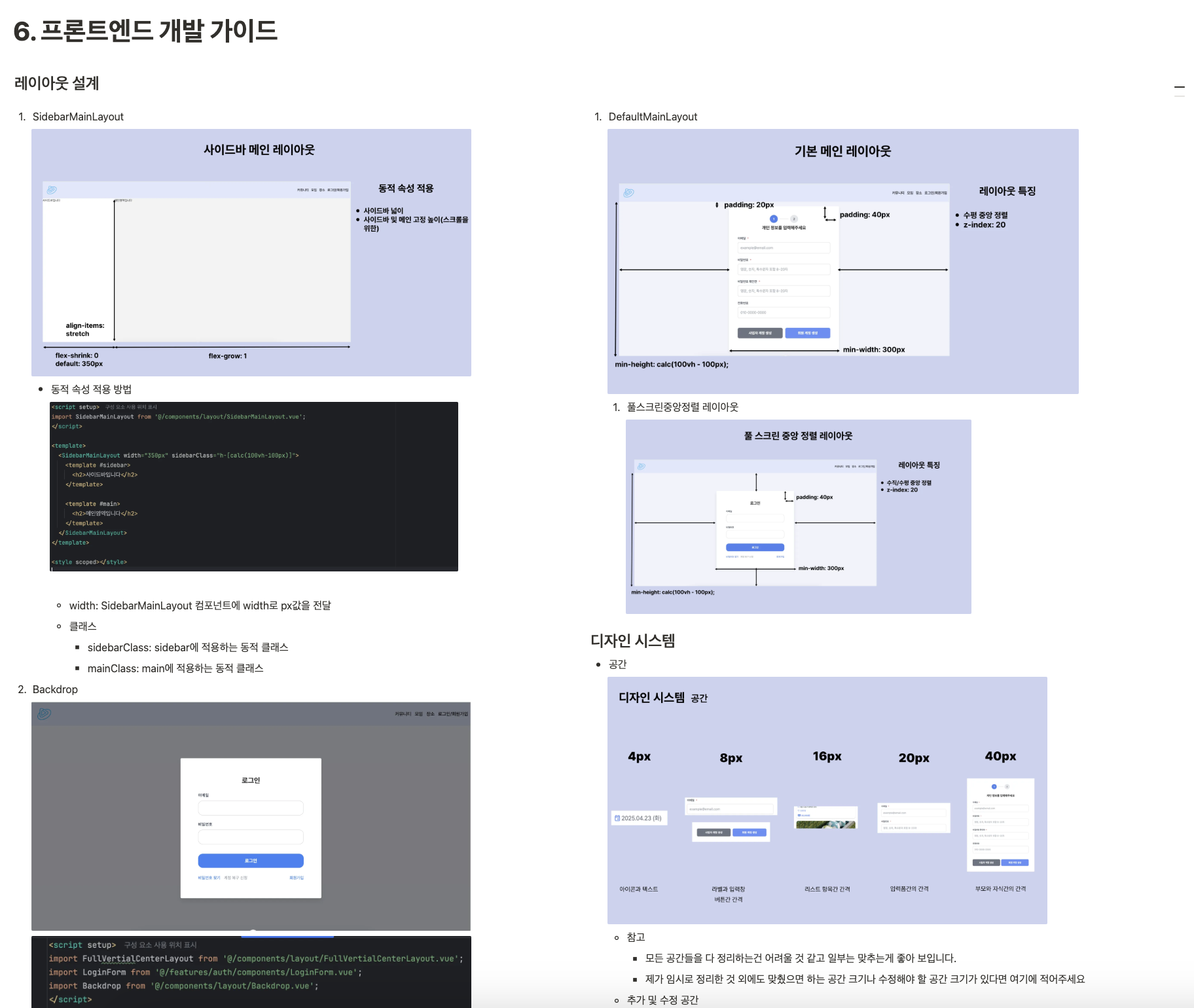 각각의 레이아웃에 대해서 width, height, paddin 등을 설정했고 공통 레이아웃이기 때문에 특정 도메인에 종속되지 않도록 필요하면 호출하는 쪽에서 class를 전달하여 적용될 수 있도록 구현하였습니다.