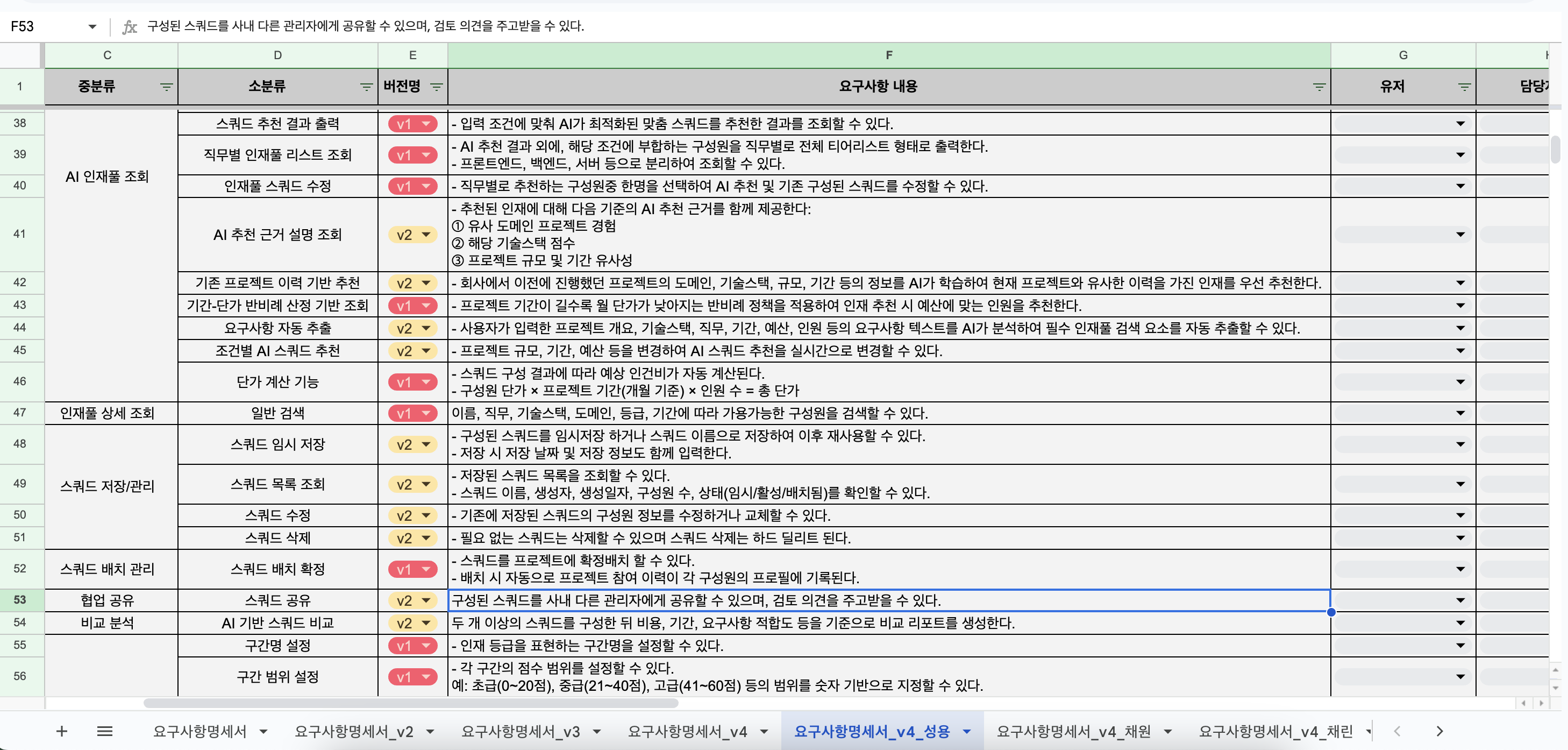 그렇게 저희는 ‘기술 중심 인재풀 기반 SI 인력 추천 및 성과관리 시스템’이라는 명확한 목표에 도달할 수 있었습니다.