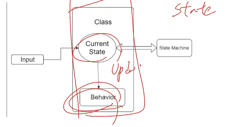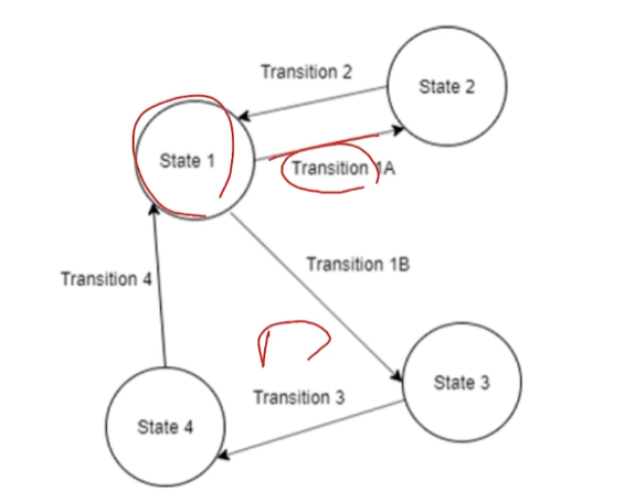 이미지처럼 각 직업을 상태라고 가정을 하자. 각 직업마다 할 수 있는 행동이 있다. (학생 - 공부한다. or 아르바이트를 한다. 등) 이러한 행동은 각 직업마다의 유기적으로 이어져 있다.