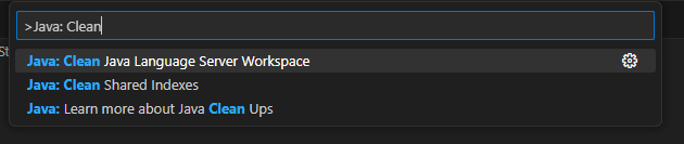 f1 > "Java: Clean Java Language Server Workspace 검색 및 실행