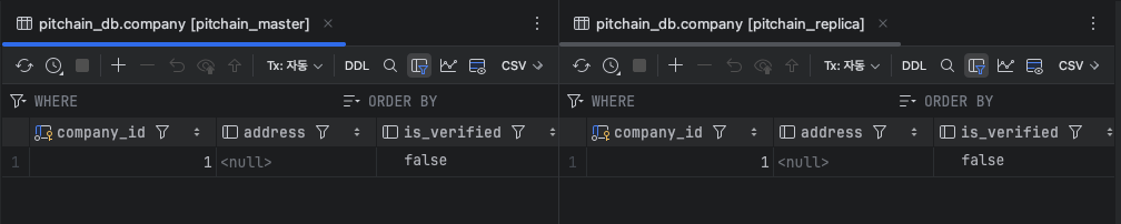 이제 master db로 데이터를 생성해주면, replica db에서도 데이터를 확인할 수 있다.