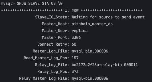 이제 replica db로 접속하여 연동을 마무리 해줘야 한다.