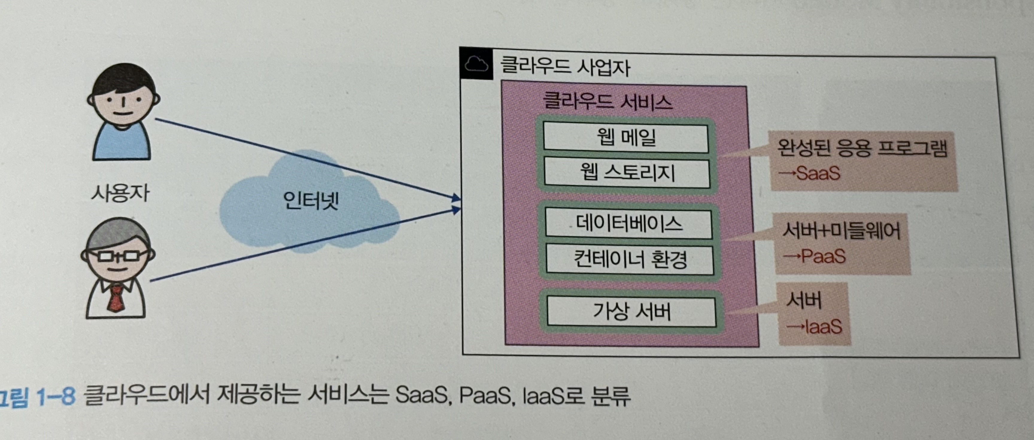 클라우드 서비스는 제공하는 서비스에 따라 SaaS, PaaS, IaaS로 나눌 수 있다.