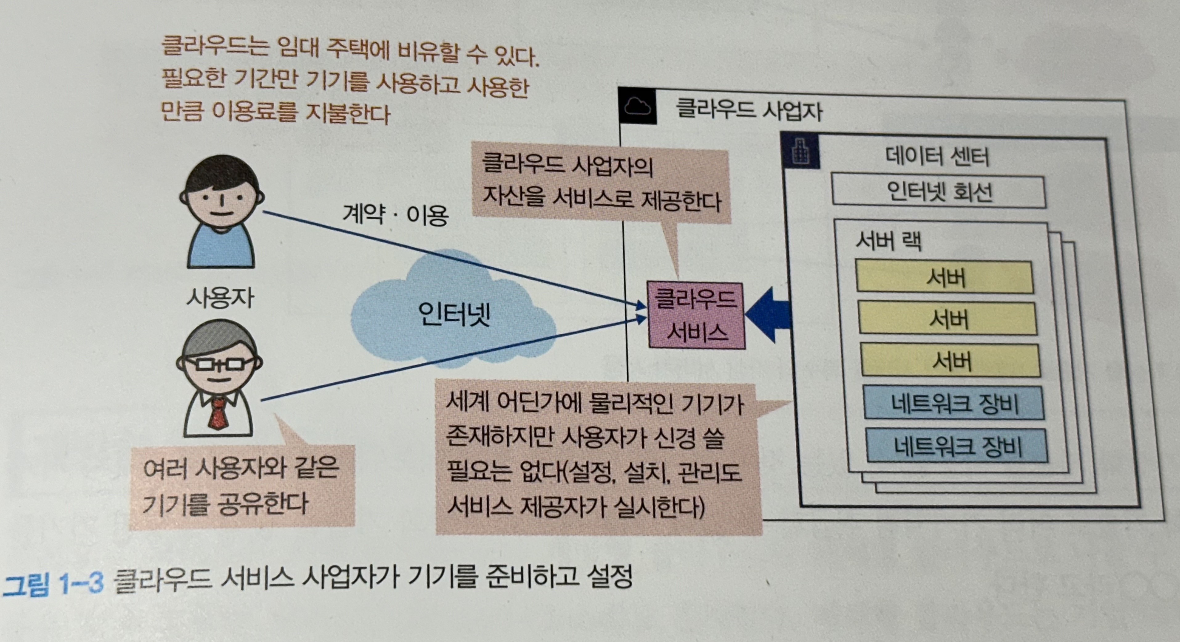 서비스 제공자는 서버나 응용 프로그램을 제공하고 내부의 모든 하드웨어를 관리하므로 사용자가 하드웨어 장애에 대해 신경쓰지 않아도 되는 장점이 있다.