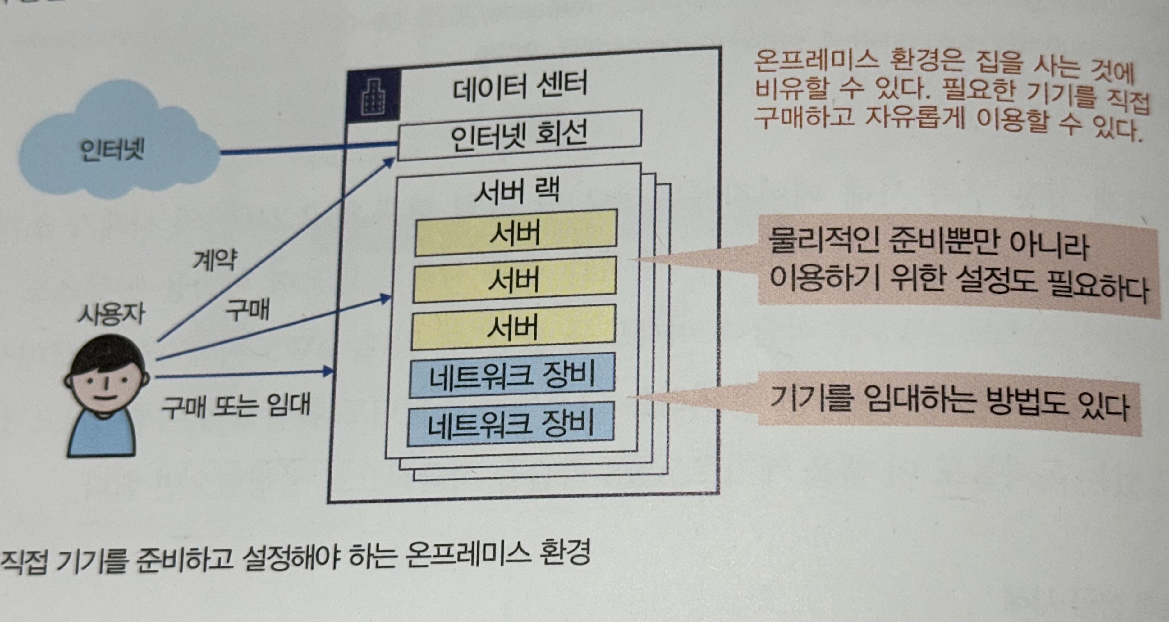 온프레미스(on-premise)란 사용자가 관리하는 시설 내에 서버 등의 기기를 설치해 운용하는 환경이다.