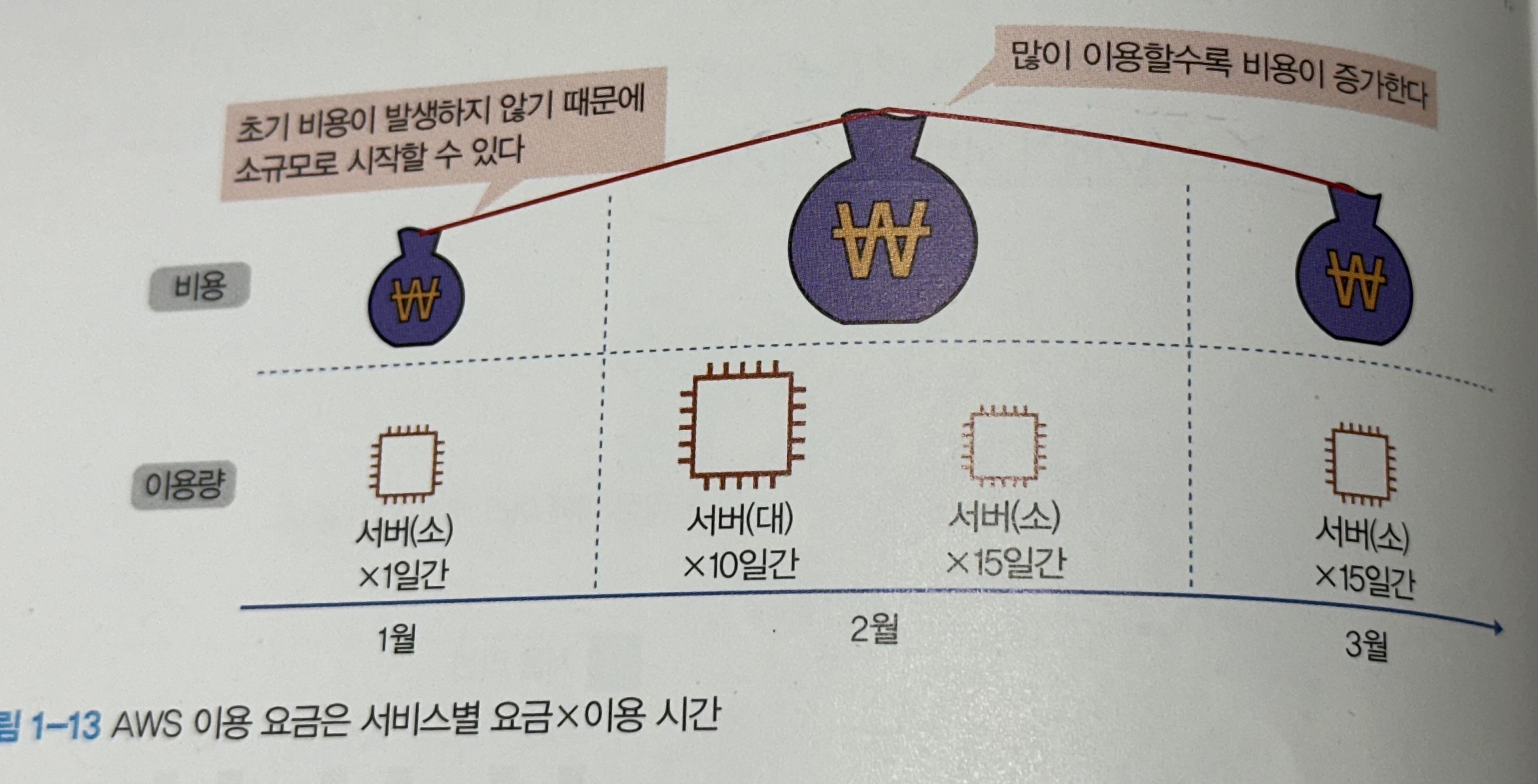 AWS는 종량 과급제다. 즉 사용한 만큼 비용이 발생하므로 소규모의 서비스를 시작할 때 유리하다는 장점이 있다.