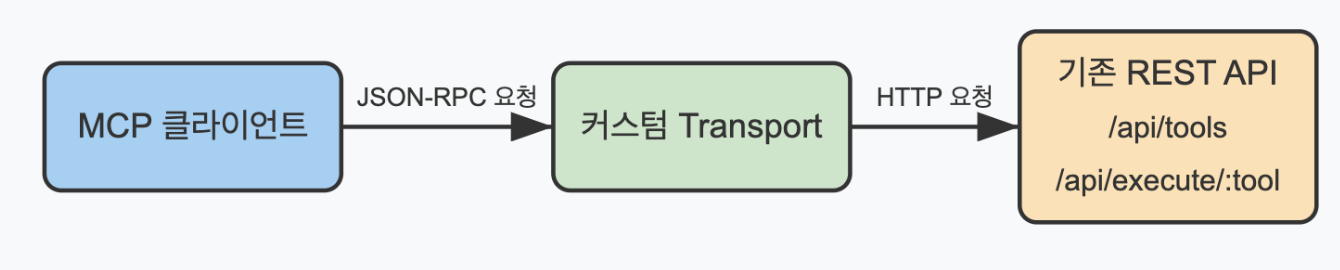 LLM 이 MCP 서버와 통신하기 위한 표준화된 HTTP 기반 통신 경로를 의미한다. LLM은 REST API의 주소나 형식을 잘 모르기 때문에 표준 통신 방식인 JSON-RPC 를 사용해야 한다. Transport Interface 는 이걸 받아서 진짜 API 요청으로 바꿔준다. 그리고 다시 결과를 LLM이 이해할 수 있는 방식으로 바꿔서 반환한다.