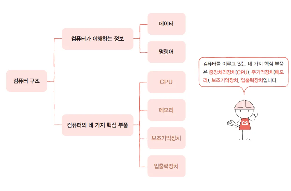 컴퓨터에서 4가지 핵심 부품을 고르라고 하면 크게 CPU, 메모리, 보조기억장치, 입출력장치가 있다.