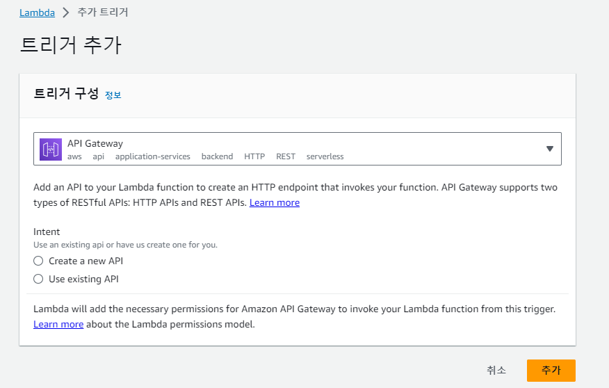 Lambda 함수가 언제 실행 될 지 트리거 설정을 할 수 있다.