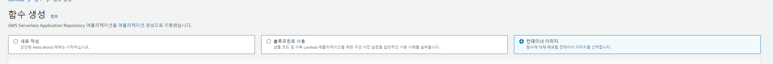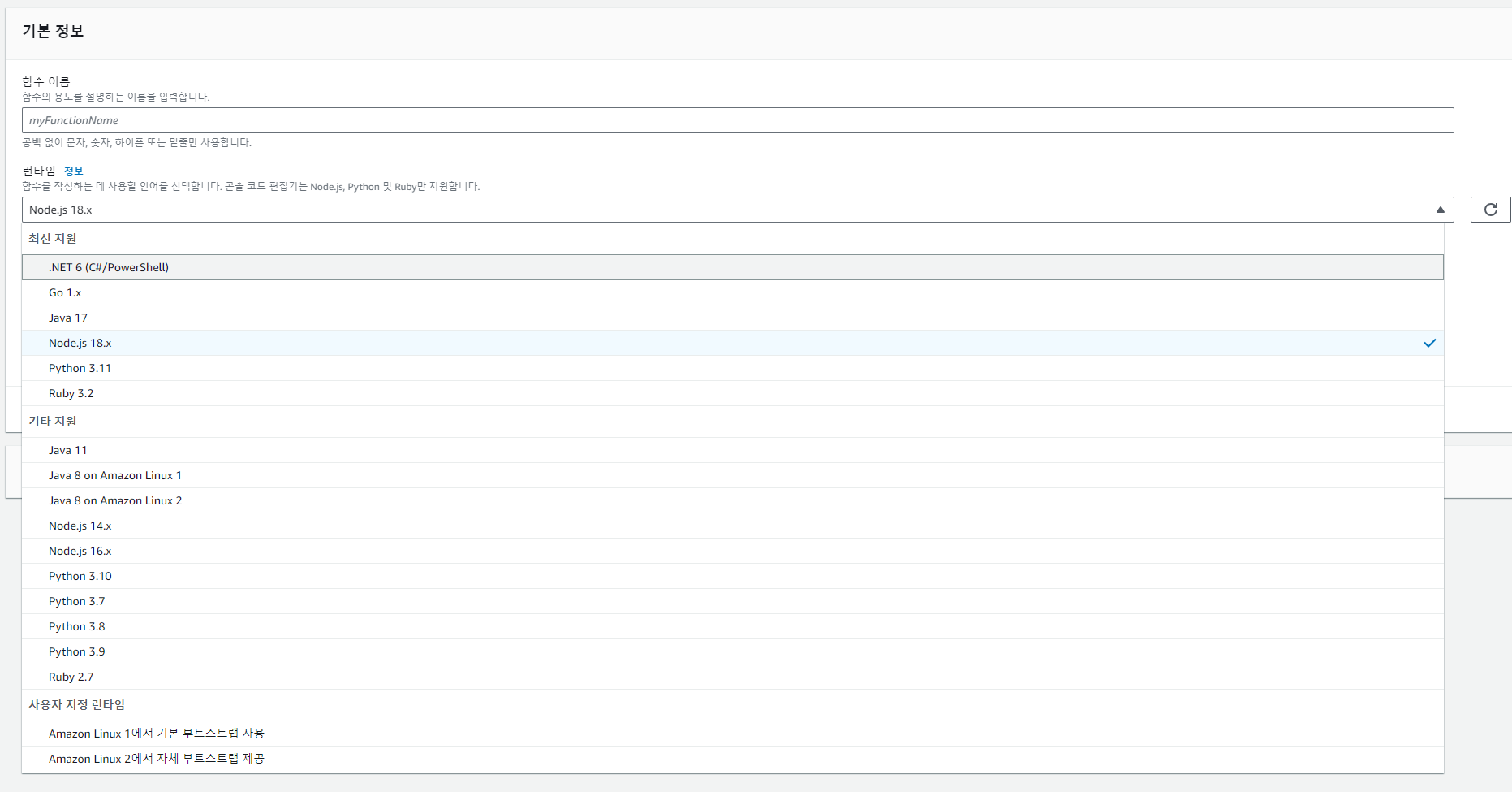 혹시 람다에서 Java Spring이나 Next.js, React.js 등을 사용하려면, 컨테이너 이미지를 사용해 도커 이미지 방식을 사용해주는 방식을 써야한다.