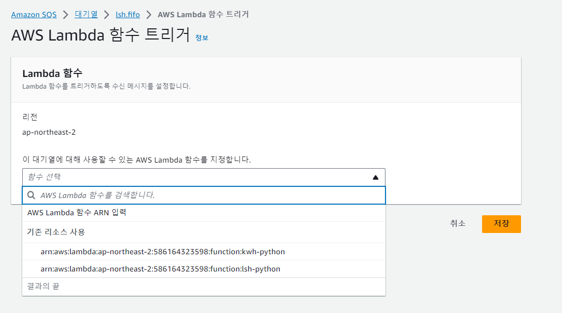 그 후 아래와 같이 SQS에 lambda 함수 트리거를 추가해주면 된다