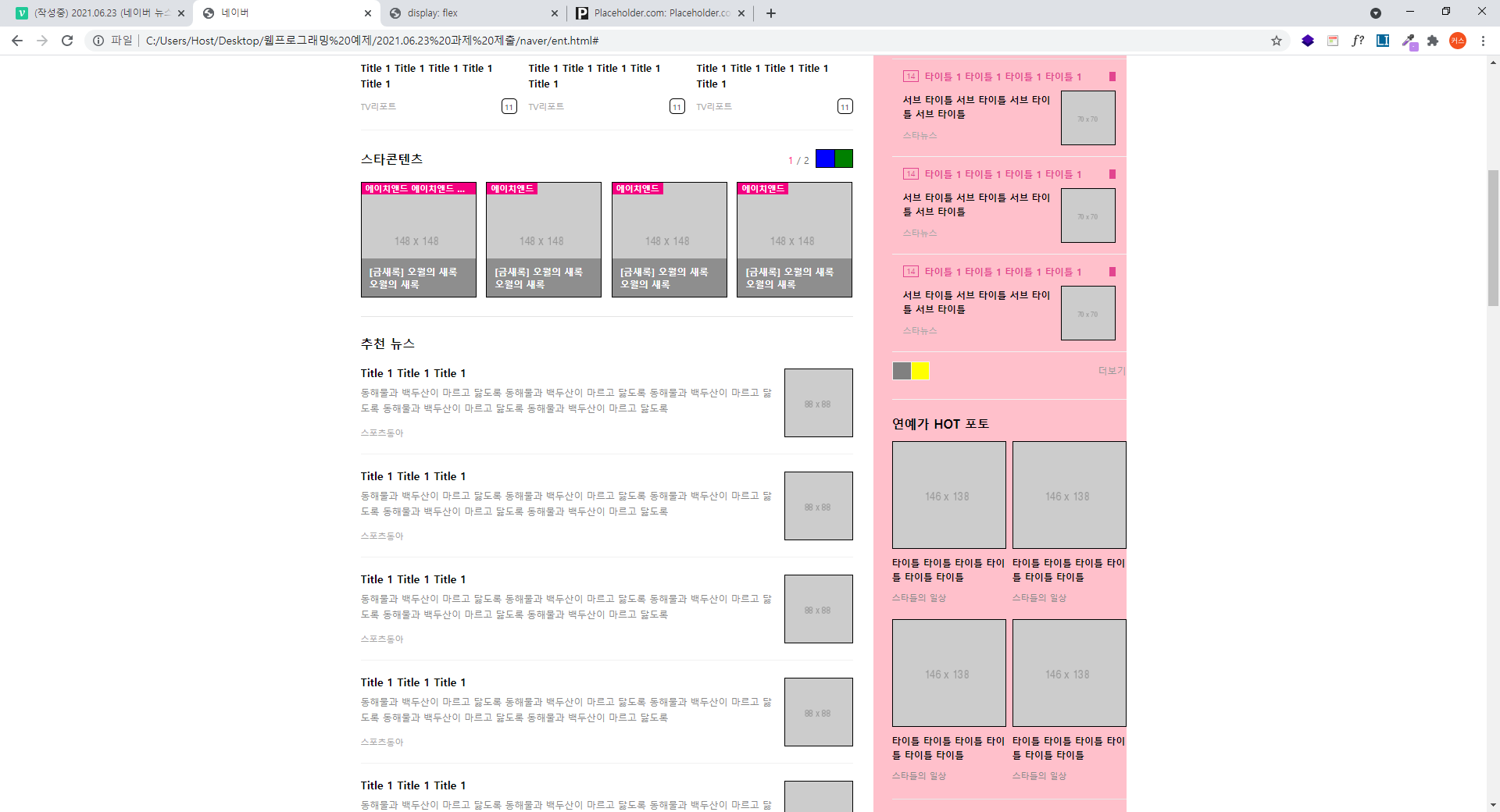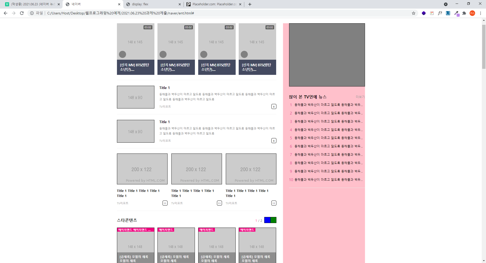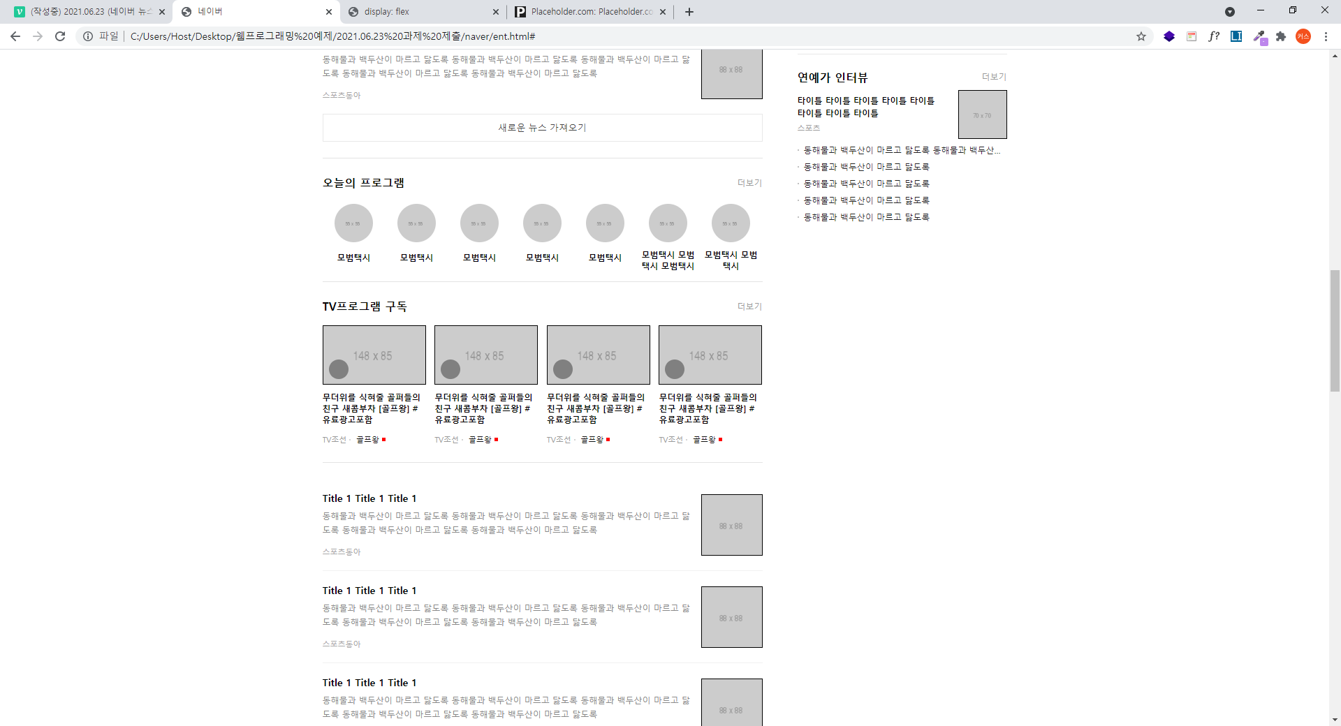 완전히 똑같지는 않지만 왼쪽부분에 작업한 내용과 비슷한 부분들이 많아서 작업하기가 수월했습니다.