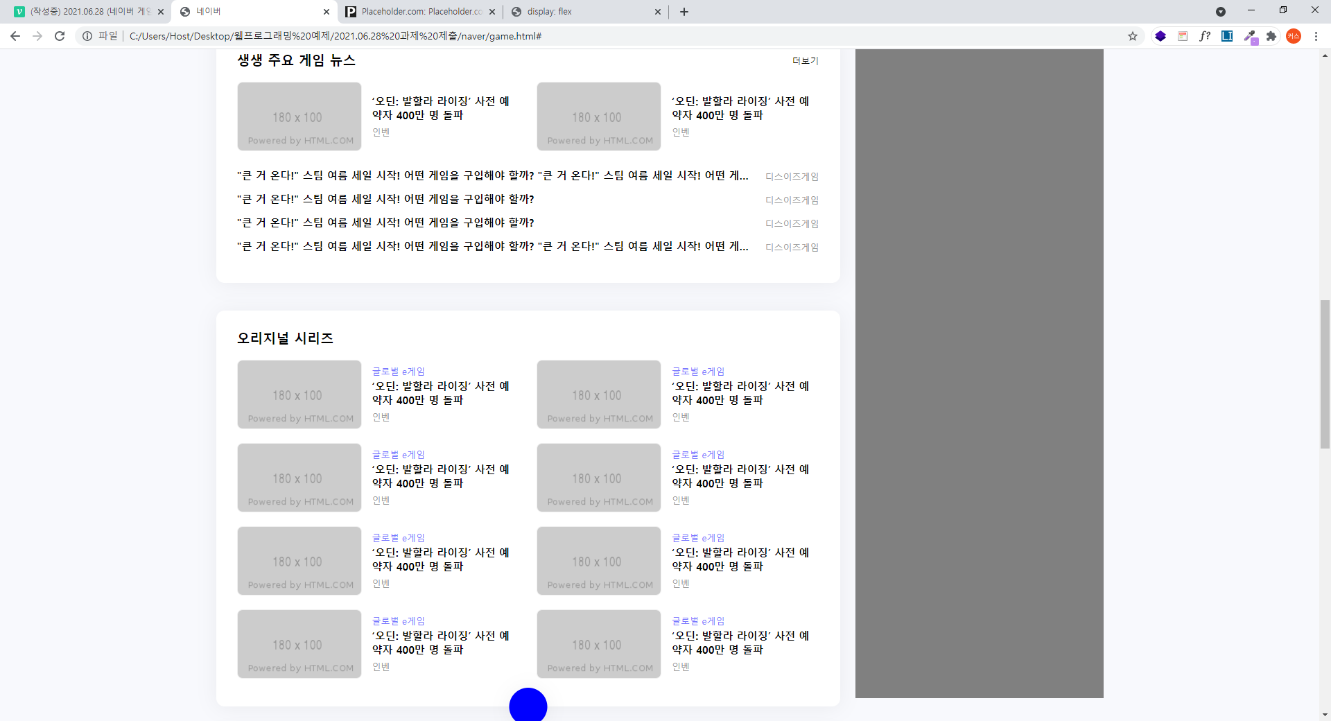 .game_section으로 시작하는 부분은 다 공통적으로도 사용가능한 css이기 때문에 우선 재사용 코드를 쓰고 관리자 모드에서 어느부분이 적용되고 안됬는지 확인후 해당 공통 선택자가 있는부분에서 어디까지가 공통 선택자 인지 확인후 수정 작업을 진행했습니다.