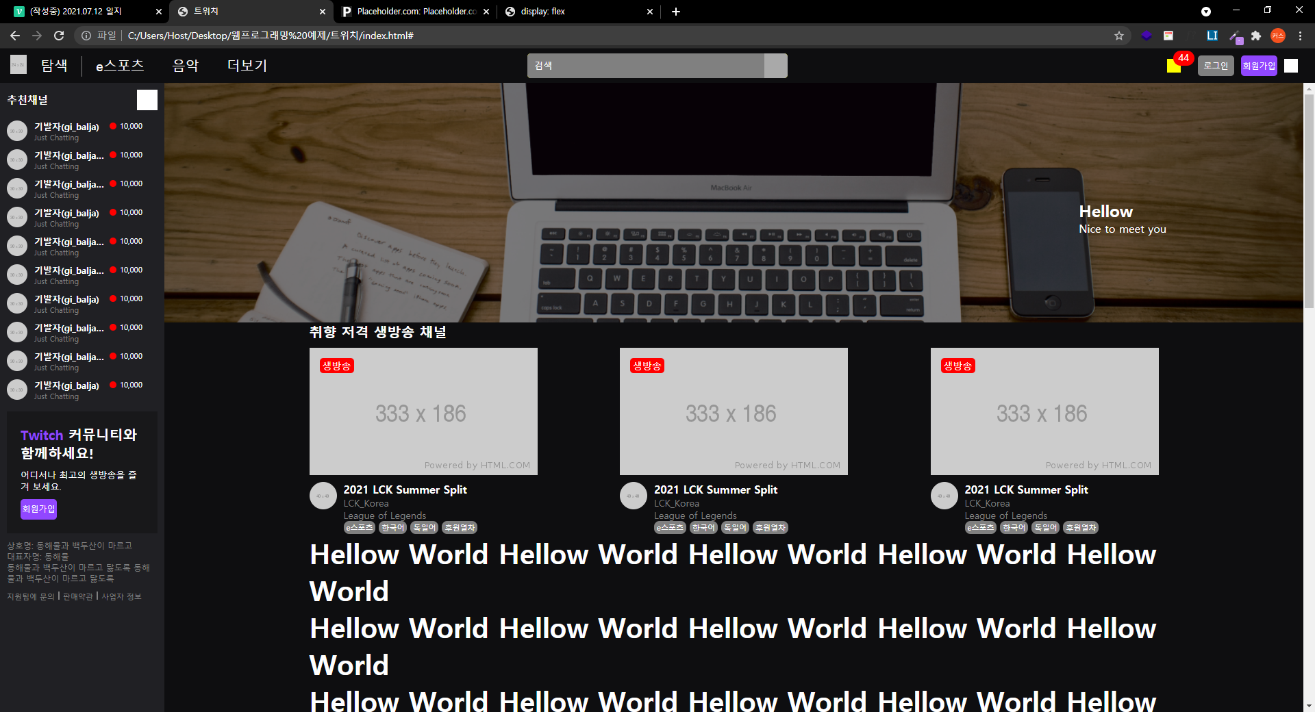 페이지 첫 접속시 어떤 구성과 배치로 메인화면을 나타낼지 구상 작업