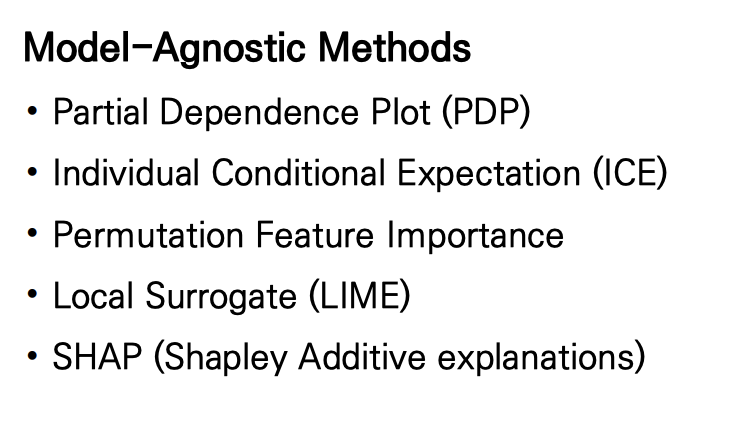 -> 대안책 : Model Agnostic(종류에 구애받지 않는) Methods