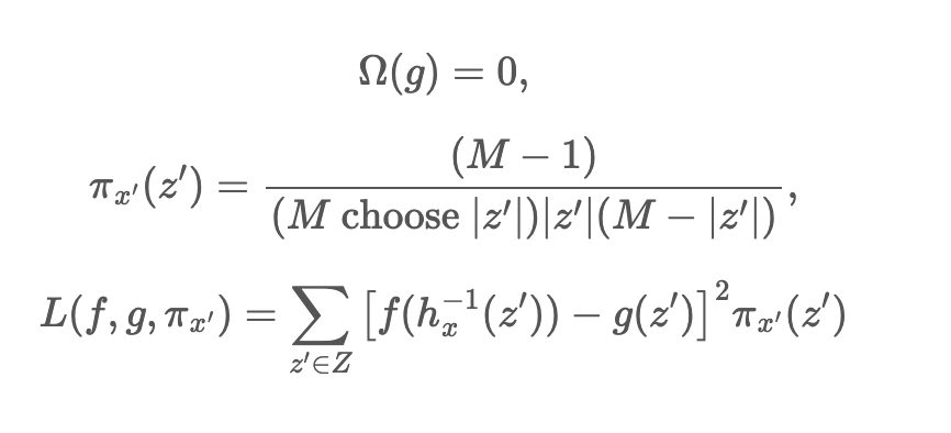 기본적으로 LIME 은 다음과 같은 식을 사용하여 EXPlanation model 을 계산한다 .