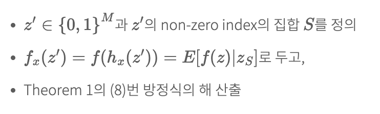 따라서, addivity/ consistency / missingness 문제점을 해결하기 위한 방법은 아래의 식 뿐! (Theorem 1)
