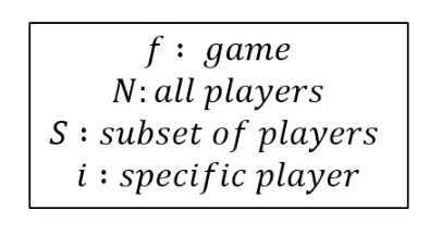 2) Shapley Value for player(i) , in game f = Average over all player'subsets