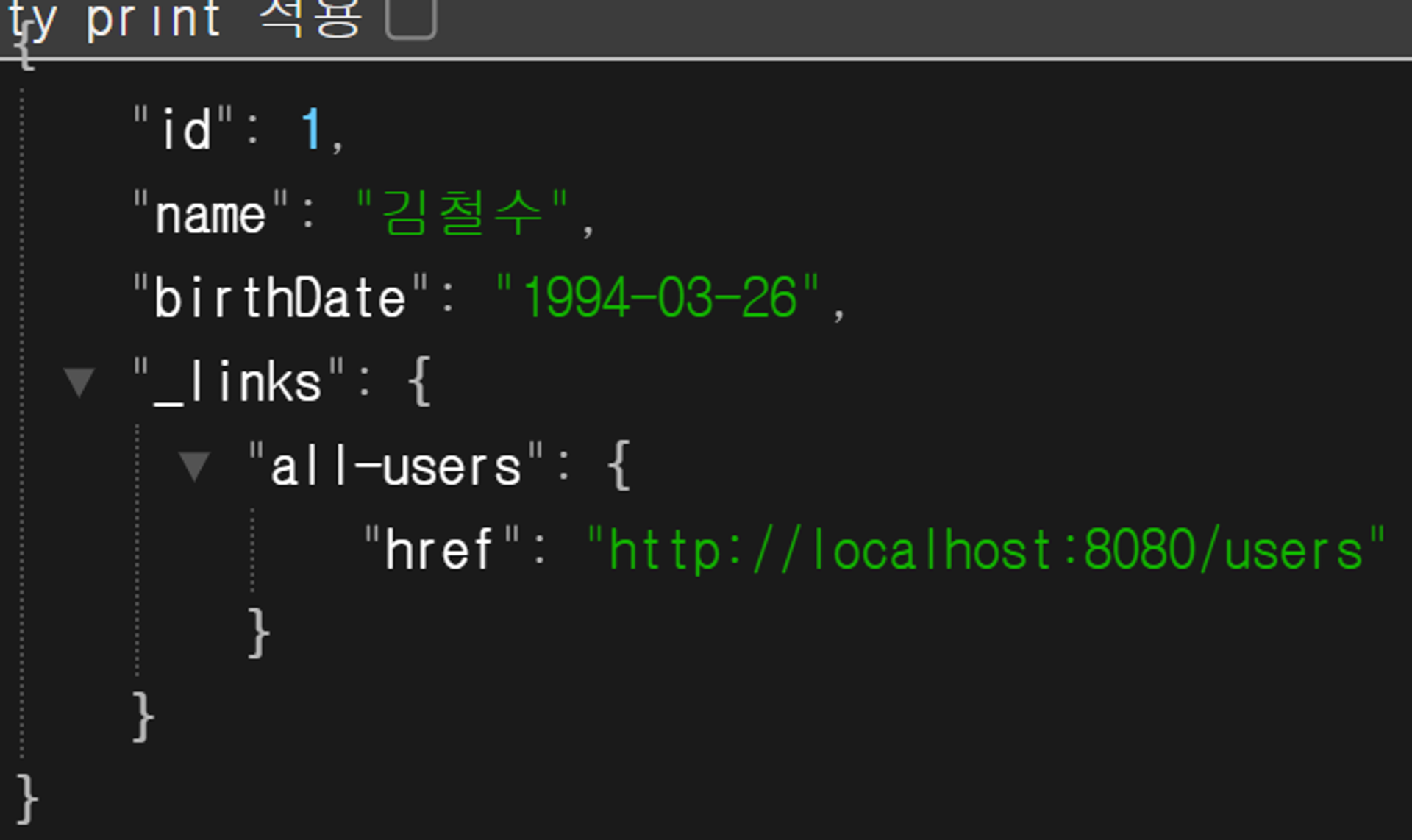 여기서는 응답으로 name, birthDate가 있습니다. 또한, links는 후속 작업을 수행하는 방법을 소비자에게 알려줍니다.