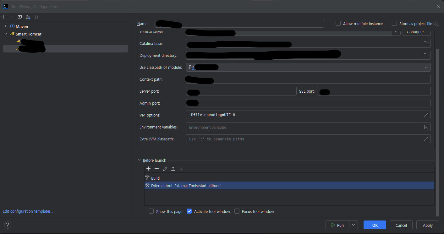 Tomcat의 Edit Configurations에서
