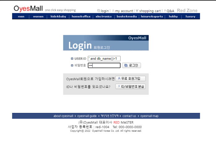 해당 공격을 통해 DB 이름이 ‘oyesmall’ 이라는 정보를 알 수 있다