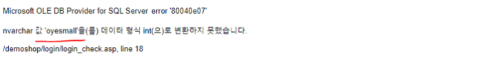문자열과 int 형을 대소비교하여 오류메시지를 유도한다