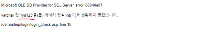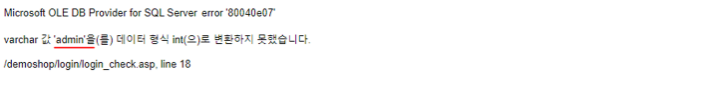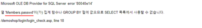 ‘테이블명 . 첫 번째 컬럼명’ 이 에러페이지에 노출