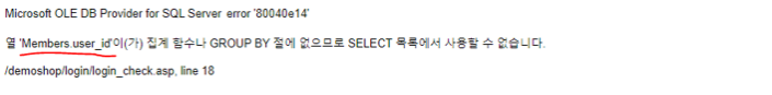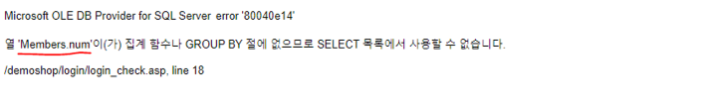 group by 문이 없기 때문에 해당 오류메시지 유도