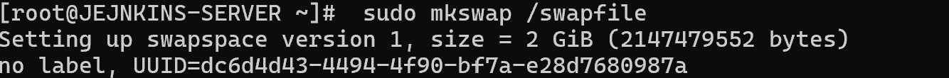 sudo dd if=/dev/zero of=/swapfile bs=128M count=16