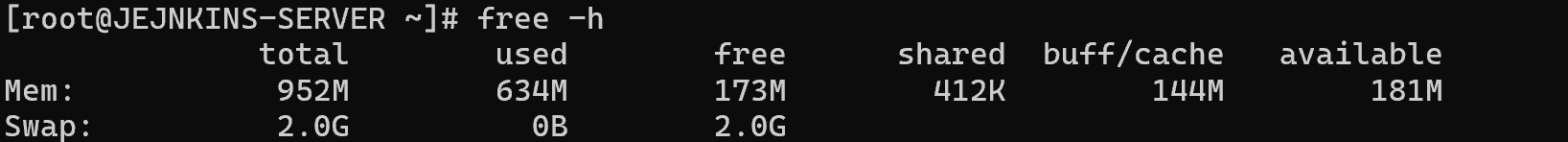스왑 메모리가 비어있는것을 확인 할수 있음...!