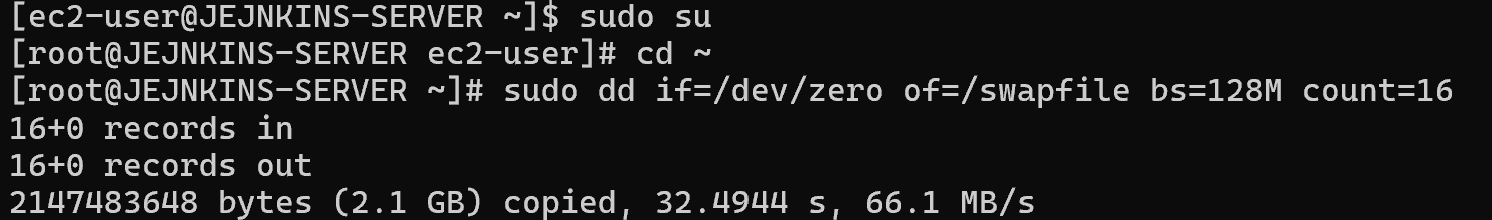 - dd 명령어를 사용하여 루트 파일 시스템에 스왑 파일을 생성한다.